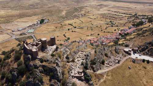 En cuanto a la configuración espacial general del yacimiento, los restos pertenecientes a la etapa musulmana se establecen a partir de una fortaleza de 1’3 ha de superficie y de un poblado extramuros de unas 3 ha aproximadamente. La primera se corresponde con una pequeña fortificación definida por tres líneas de muralla no concéntricas reforzadas con torres en cubo; dichas murallas describen tres recintos situados a distinta cota, cuyos lienzos de tapial hormigonado se levantan sobre potentes zócalos de mampuesto. El recinto superior se identifica con el alcázar de la fortaleza, del que nos ha llegado buena parte de su muro de cierre, una torre central y un espectacular aljibe, fechado entre los siglos XI y XII. Tras la conquista cristiana, sobre los restos de la mitad sur del alcázar musulmán se levantó un castillo que, tras varias reformas a principios del siglo a finales del siglo XIV y XV, fue punto de control militar de los Estados de Capilla, un señorío perteneciente a la familia Zúñiga, del que dependían los núcleos de población de Peñalsordo, Zarza-Capilla, Risco, Garlitos, Baterno y la propia Capilla, que estaba a la cabeza del señorío.